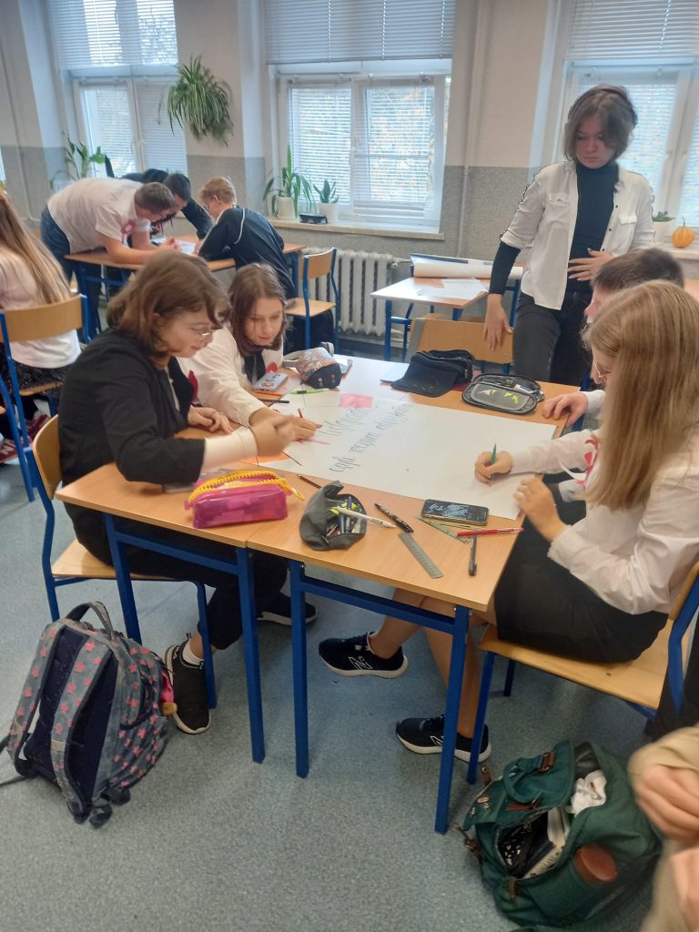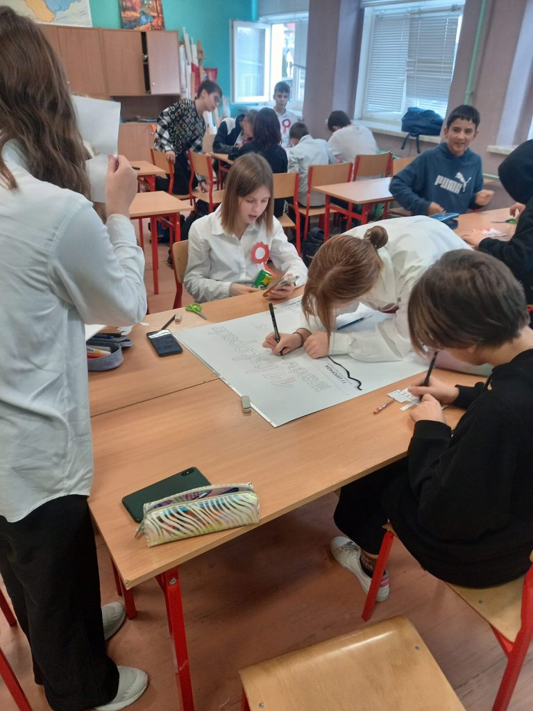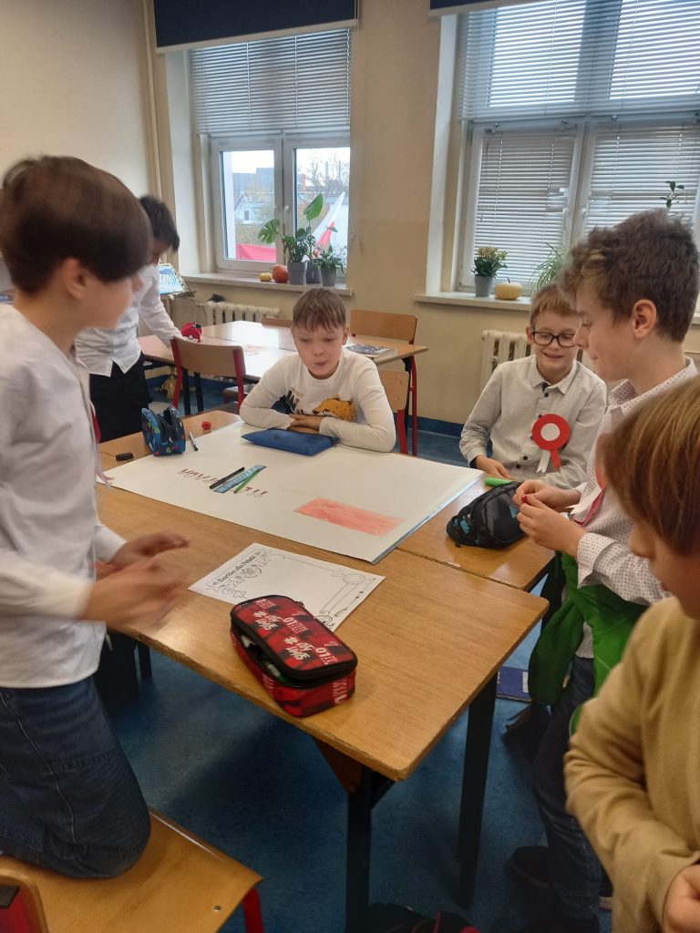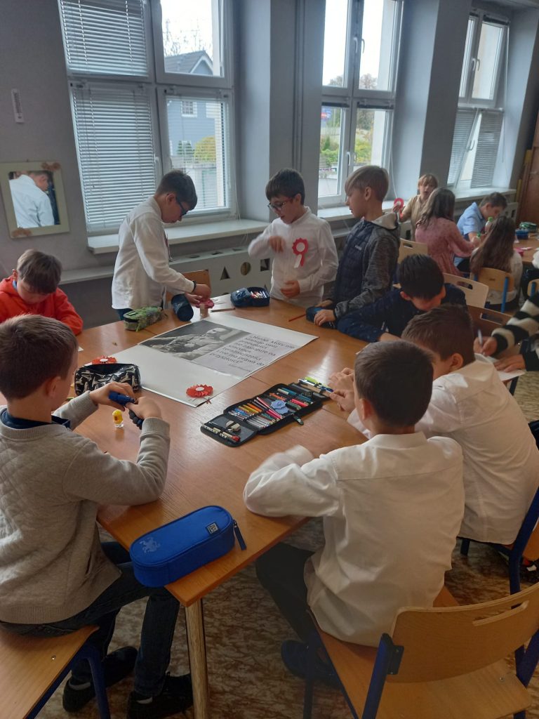 Uczennica klasy ósmej, Viktoria Cuda przedstawiła prezentację, która pozwoliła nam przypomnieć sobie wiadomości o czasach gdy Polskę odzyskała niepodległości w 1918 roku.