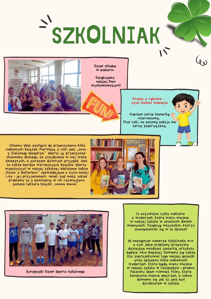 Aktualności GAZETKA SZKOLNA W tym roku szkolnym jest redagowana przez uczniów klasy VIII, gazetka szkolna ,, SZKOLNIAK” Pod opieką ks. Partyka. Zapraszamy wszystkich do lektury. Poprzedni "Zielony parapet" odżywa Nowszy DOKARMIAMY PTAKI Może Ci się spodobać 30 maja 2022 WYCIECZKA DO FABRYKI POLARIS 22 listopada 2021 MIEJSKA INAUGURACJA SPORTOWEGO ROKU SZKOLNEGO 2023/2024 POD PATRONEM NACZELNIKA WYDZIAŁU OŚWIATY 20 września 2023