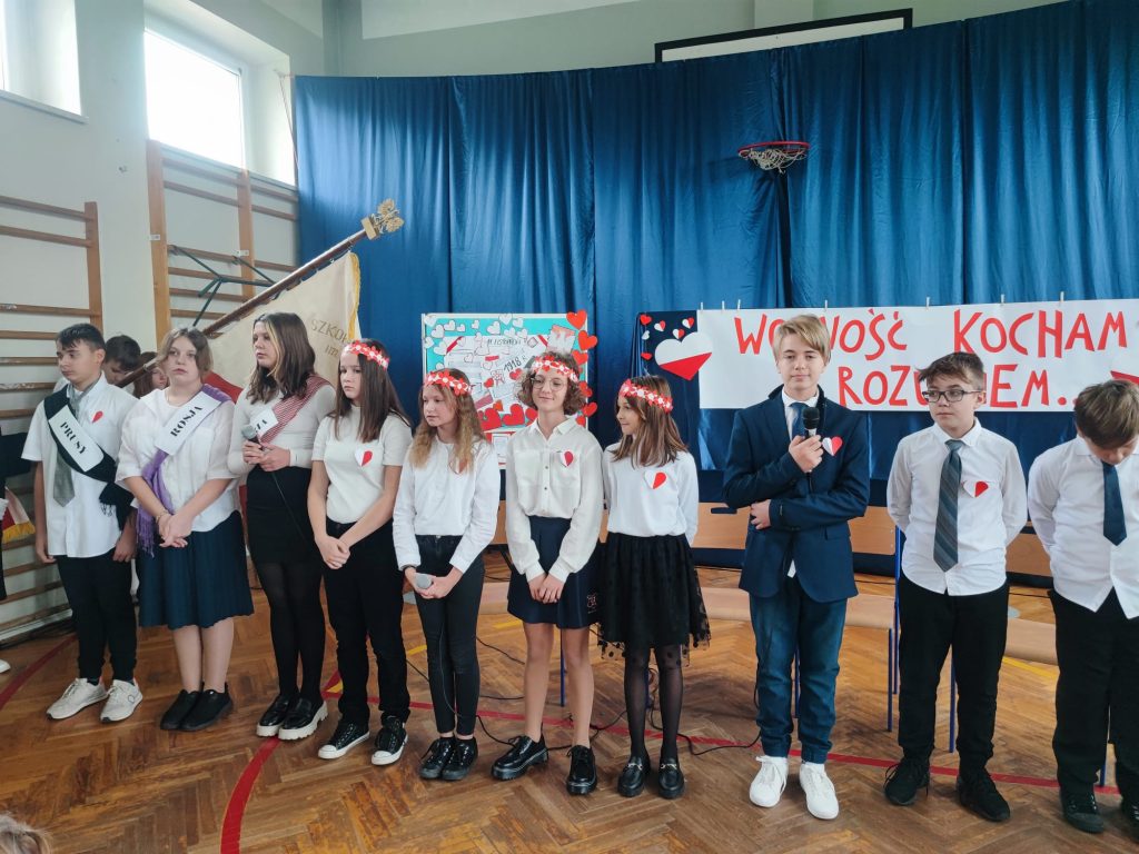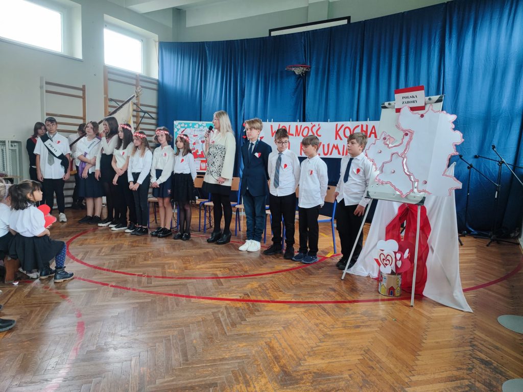 W podniosłym nastroju spotkaliśmy się całą społecznością szkolną na uroczystym apelu, by obejrzeć spektakl pod hasłem: „Wolność kocham i rozumiem” przygotowany przez uczniów klasy 5 i 6.