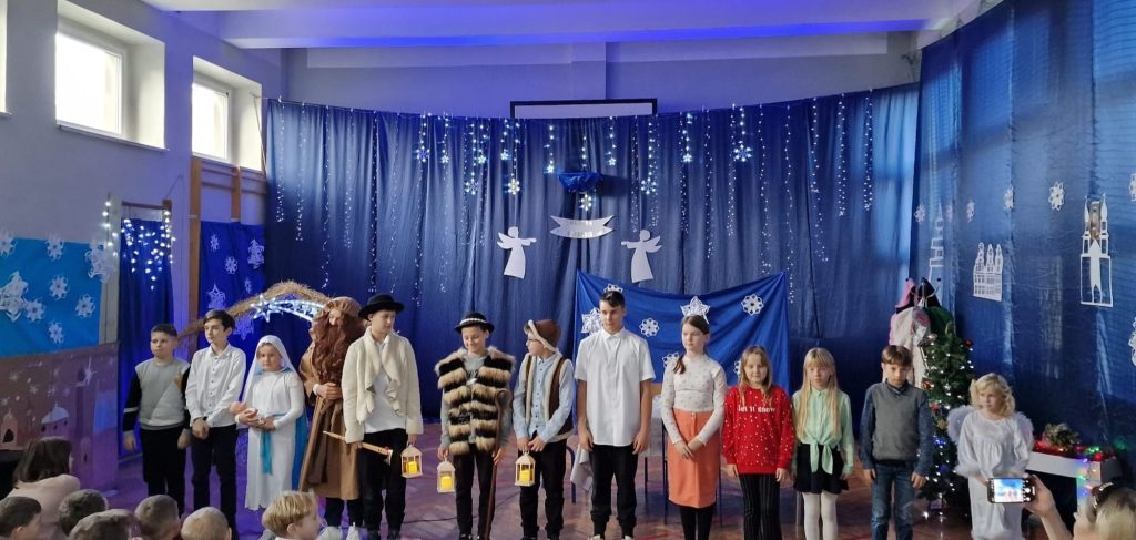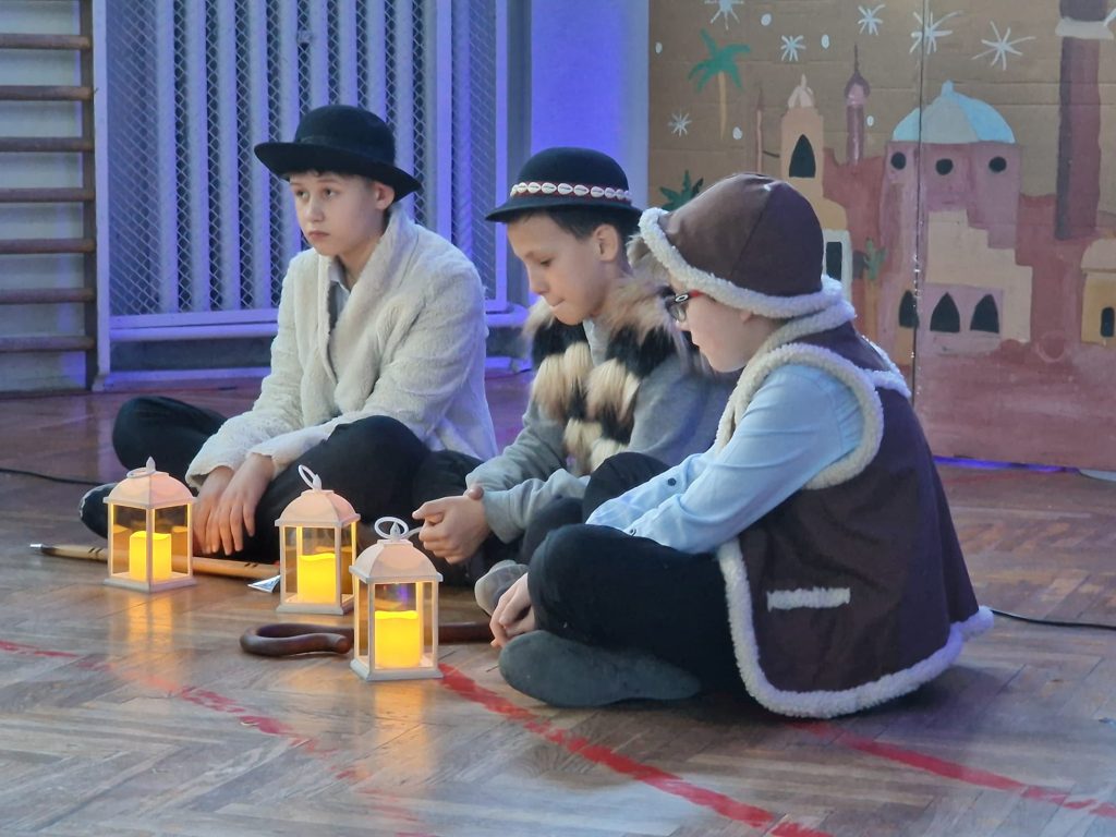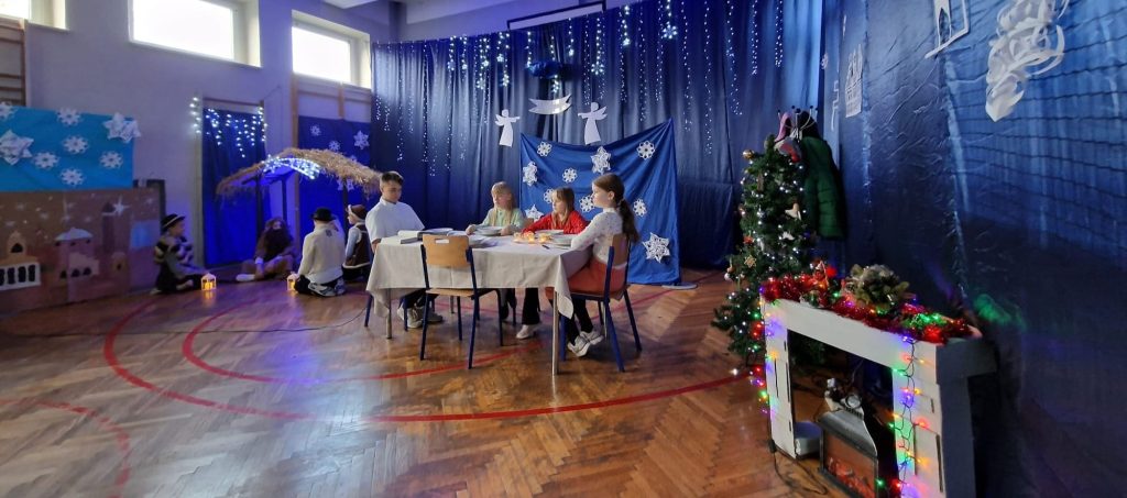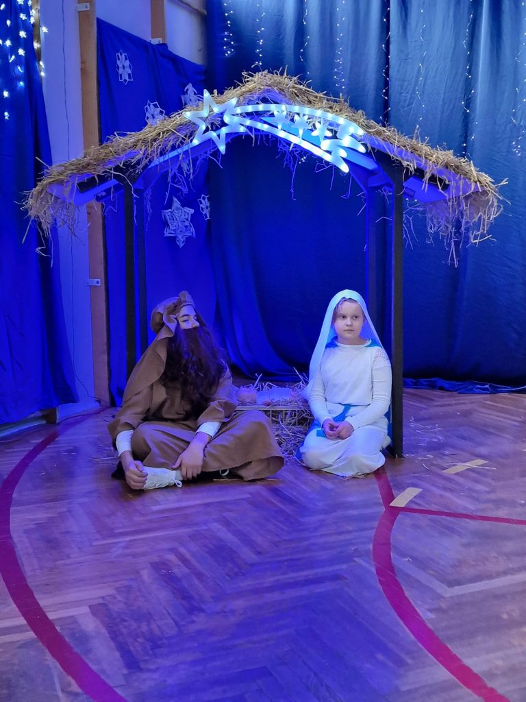Następnie szkolni aktorzy zaprezentowali historię narodzin Jezusa Chrystusa. Podczas jasełek można było też ujrzeć tradycyjną rodzinę, która przygotowuje się do wieczerzy.