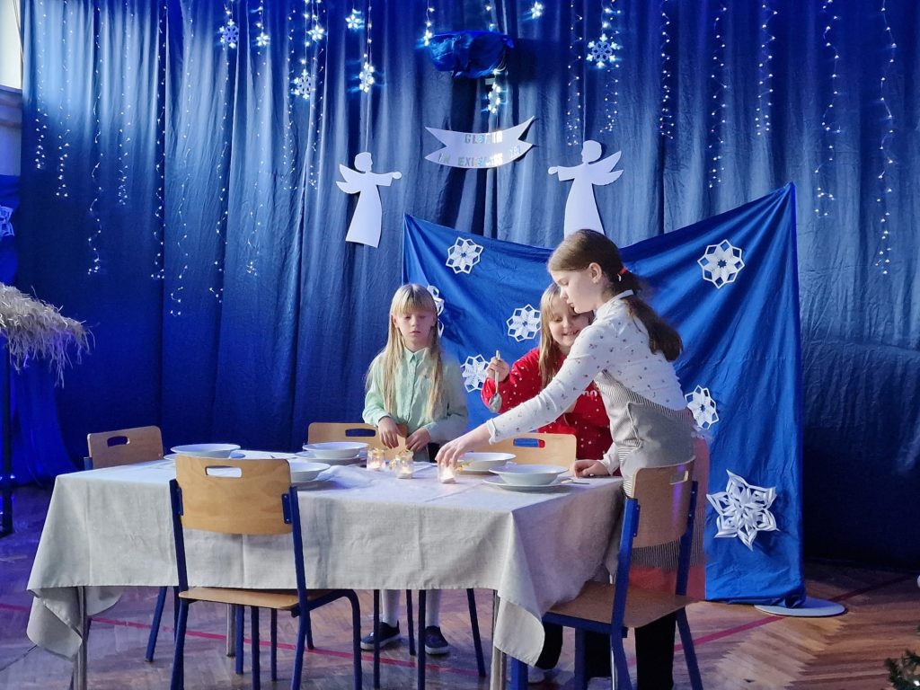 Tradycyjnie, jak co roku nasi uczniowie początkowo spotkali się wraz z wychowawcami oraz pozostałymi nauczycielami, by móc spędzić wspólnie czas, podzielić się opłatkiem, złożyć życzenia świąteczne.