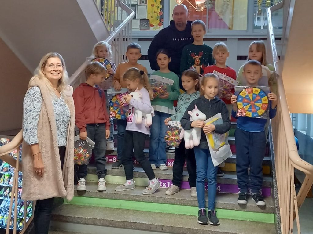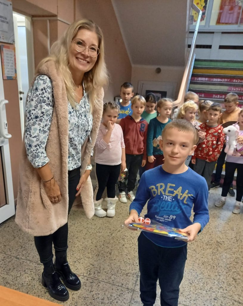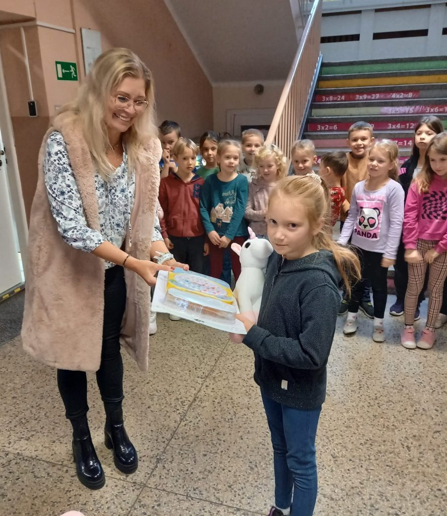 Pani dyrektor wręczyła nagrody uczniom biorącym udział w konkursie.