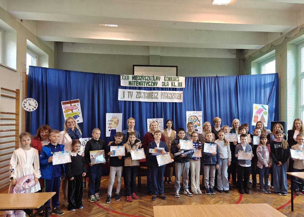 Dziś, jak co roku, odbył się w naszej szkole Międzyszkolny Konkurs Matematyczny „I TY ZOSTANIESZ PITAGORASEM”, tym razem w ramach obchodów 70-lecia naszej szkoły. W konkursie wzięło udział 18 uczniów klas trzecich miasta Opola. Wydarzenie to było okazją do sprawdzenia swoich umiejętności rachunkowych oraz logicznego myślenia w atmosferze zdrowej rywalizacji. Wszyscy uczestnicy wykazali się dużym zaangażowaniem i determinacją, a poziom konkursu był bardzo wyrównany. Z dumą ogłaszamy laureatów naszego konkursu: