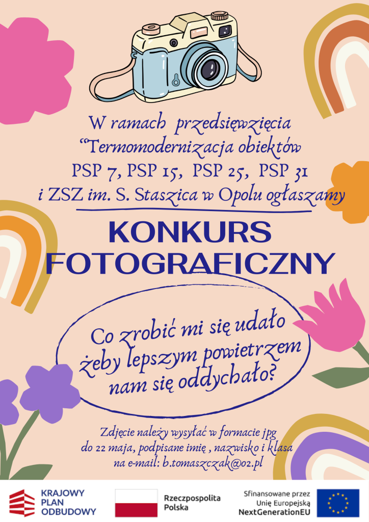 Aktualności, PSP 7 KONKURS FOTOGRAFICZNY W ramach przedsięwzięcia: „Termomodernizacja obiektów PSP nr 7, PSP nr 15, PSP nr 25, PSP nr 31 i ZSZ im. St. Staszica w Opolu” serdecznie zapraszamy uczniów naszej szkoły do udziału w konkursie fotograficznym. Na prace czekamy do 22 maja!!! Poprzedni Dzień Ziemi w naszej szkole Nowszy KLASA 1 NA WARSZTATACH W PRACOWNI SOWA Może Ci się spodobać WYNIKI KONKURSU 3 listopada 2022 KLASA II ZWIEDZA ZABYTKI 5 lipca 2024 11 LISTOPADA 12 listopada 2024