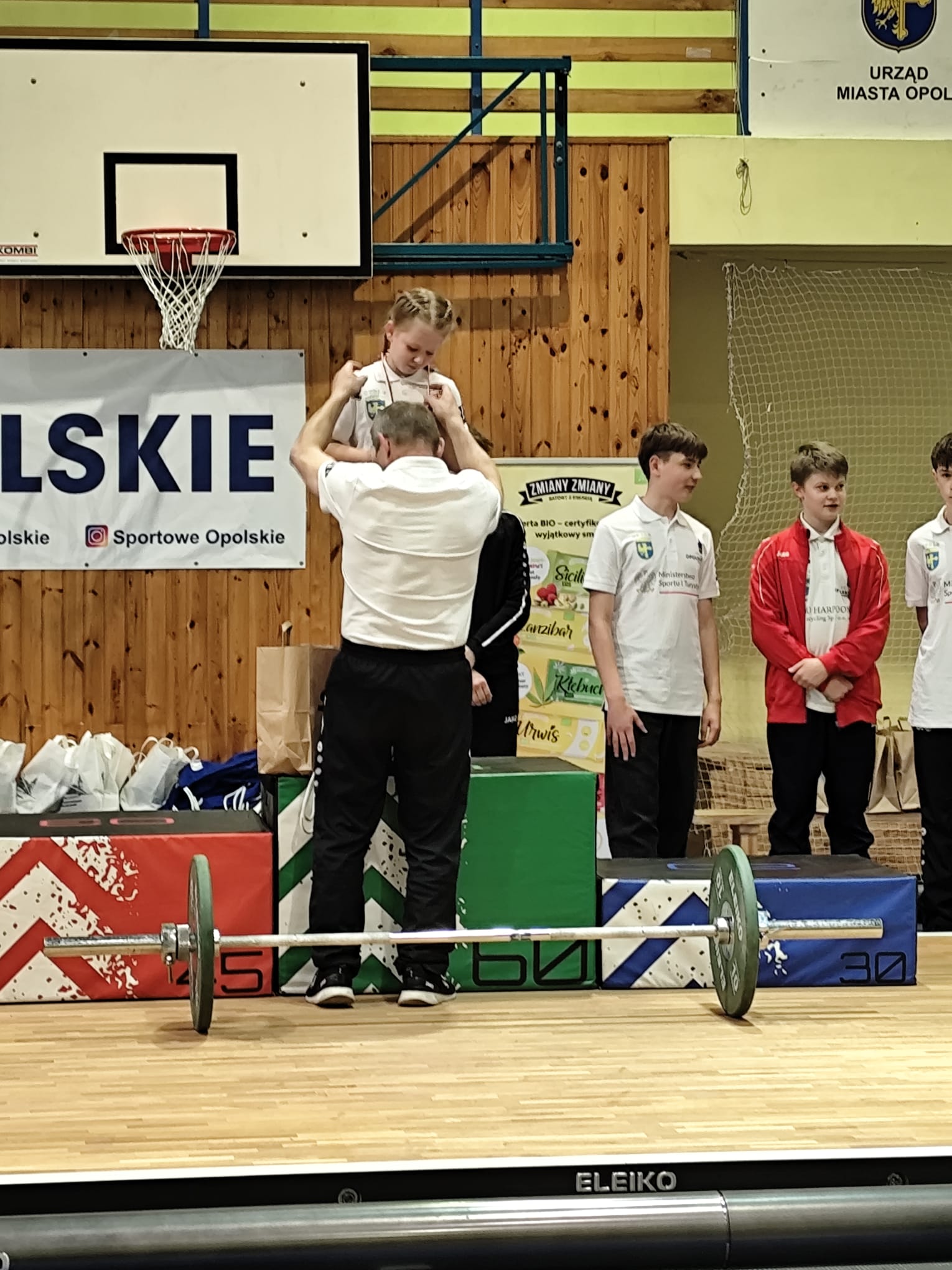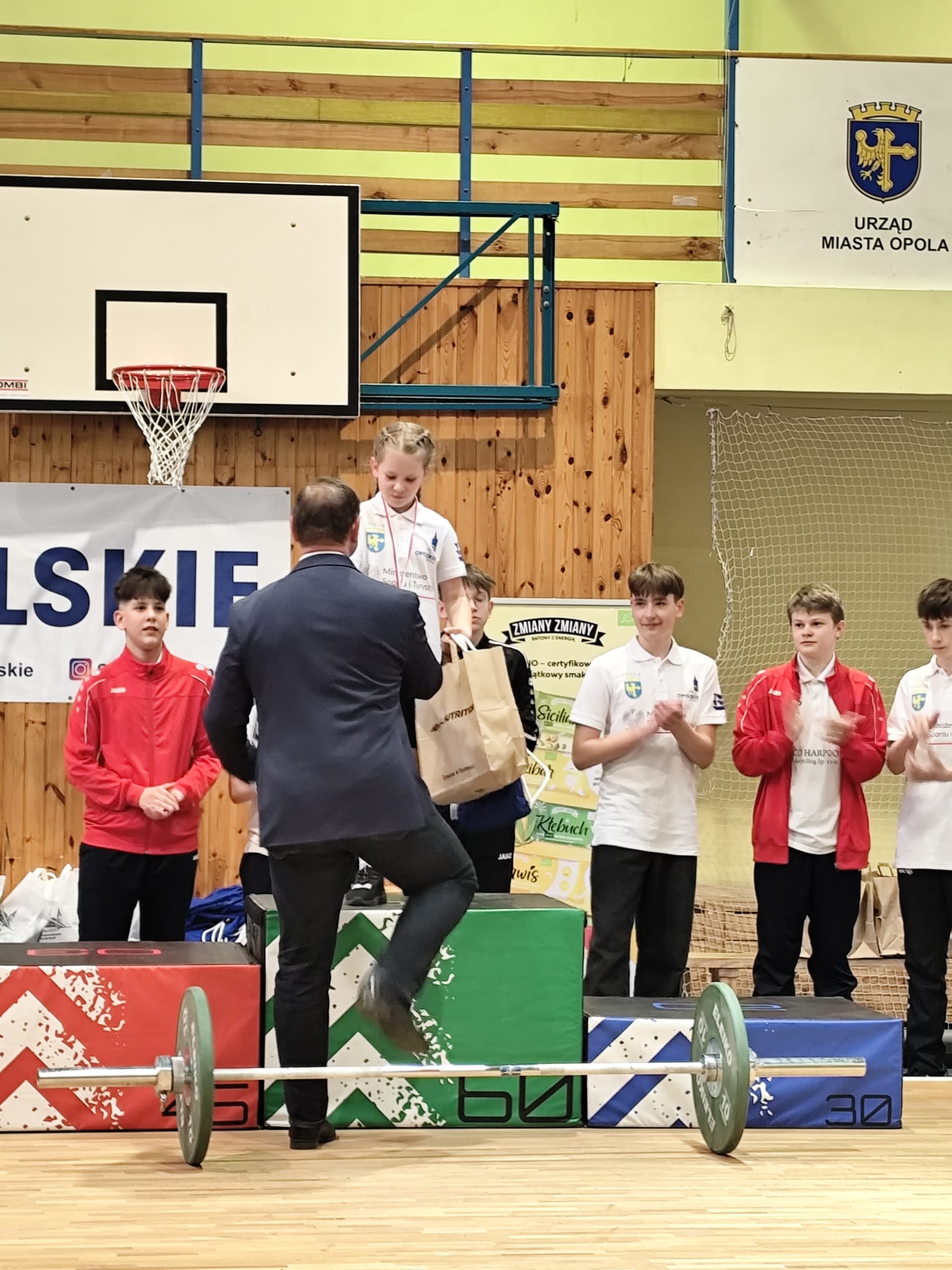 Uczennica klasy 3, Karolina Kubis, reprezentowała Klub Sportowy „Budowlani” Opole podczas zawodów sportowych: Mistrzostw Okręgu Opolskiego w podnoszeniu ciężarów, które odbyły się w dniu 19.04.2026r. Karolina zajęła I miejsce i zdobyła tytuł Mistrzyni Okręgu do lat 12 w kat. do 45kg. To ogromny sukces – gratulujemy